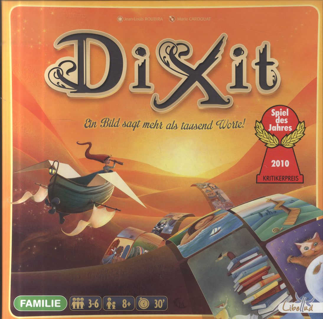Dixit [Gra planszowa] : odyseja : obraz jest wart tysiąca słów / Jean-Louis Roubira ; ilustracje Marie Cardouat i Pierô. - Poitiers : Libellud ; Gdańsk : Rebel, [2017]. - 1 pudełko ; wymiary pudełka 28x28x6 cm + instrukcja.