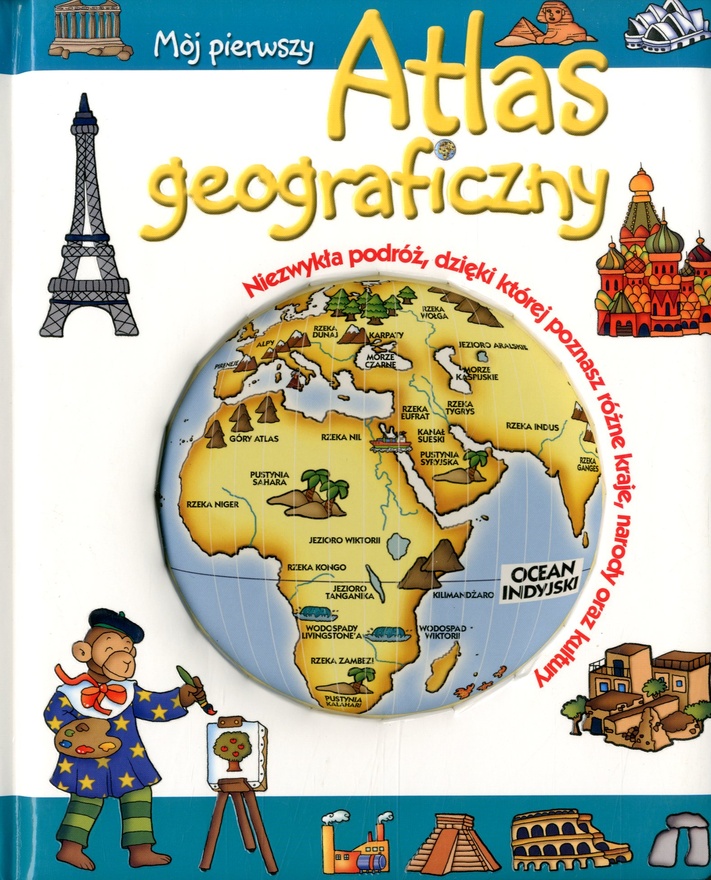 Mój pierwszy atlas geograficzny / tł. Katarzyna Mossakowska. - Ożarów Mazowiecki : Firma Księgarska Jacek i Krzysztof Olesiejuk, copyright 2007. - 1 atlas ([22] strony) : mapy, rysunki, tekst kolorowe ; 26 cm.
